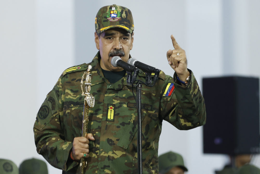 11月25日,委内瑞拉总统马杜罗在加拉加斯举行的游行活动上发表讲话。新华社发